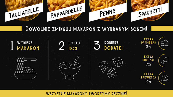Restauracja La Monka potrzebowała spójnych i profesjonalnych materiałów firmowych, aby wzmocnić swoją identyfikację wizualną i zwiększyć zaangażowanie klientów. Brakowało jej atrakcyjnych menuboardów w jakości Full HD, estetycznych naklejek, kart lojalnościowych i rabatowych oraz wizytówek. Chciała podkreślić swoją pasję do codziennej produkcji świeżych makaronów z najwyższej jakości składników, jednocześnie tworząc przyjemną atmosferę dla miłośników dobrej kuchni.